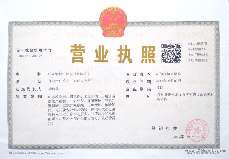 | 發(fā)證機(jī)構(gòu): | ??開封市藥品監(jiān)督管理局 | 發(fā)證時間 : | ??2015-05-07 |
