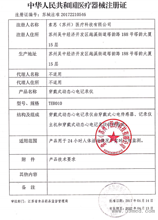 | 發(fā)證機(jī)構(gòu): | ??江蘇省食品藥品監(jiān)督管理局 | 發(fā)證時(shí)間 : | ??2017-04-14 |