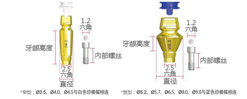 *特色:內(nèi)部有1字形狀結(jié)構(gòu),在托盤(pán)印模上再把印模轉(zhuǎn)移桿(Coping)放置時(shí)易于確定方向。